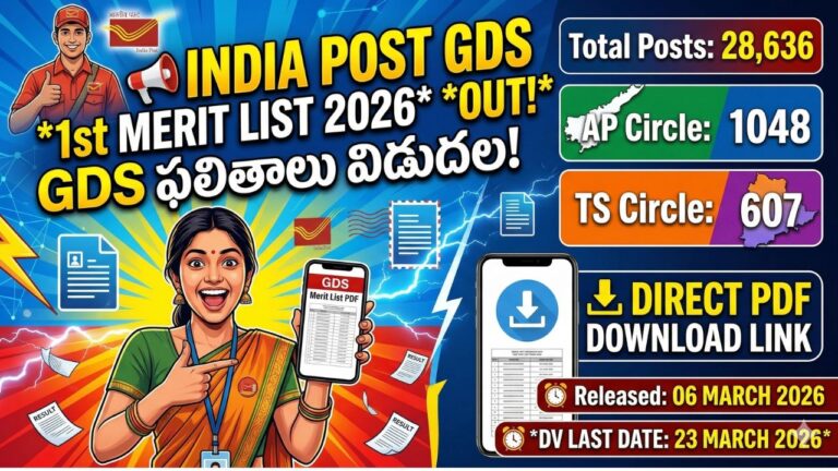📢 India Post GDS 1st Merit List 2026 Out – Direct PDF Download India Post గ్రామీణ డాక్ సేవక్ (GDS) నియామకాలకు …