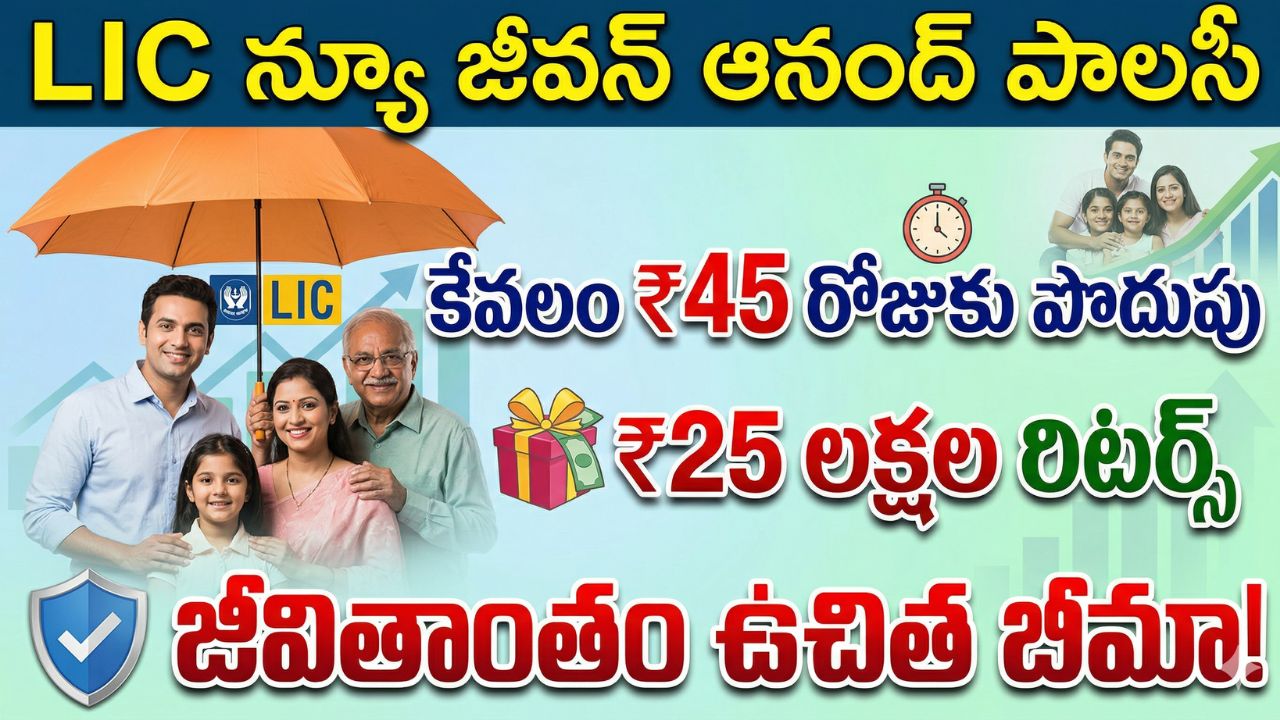 🔥 LIC New Jeevan Anand Policy: రోజుకు ₹45 పెట్టుబడి చేస్తే ₹25 లక్షలు.. జీవితాంతం ఉచిత బీమా!